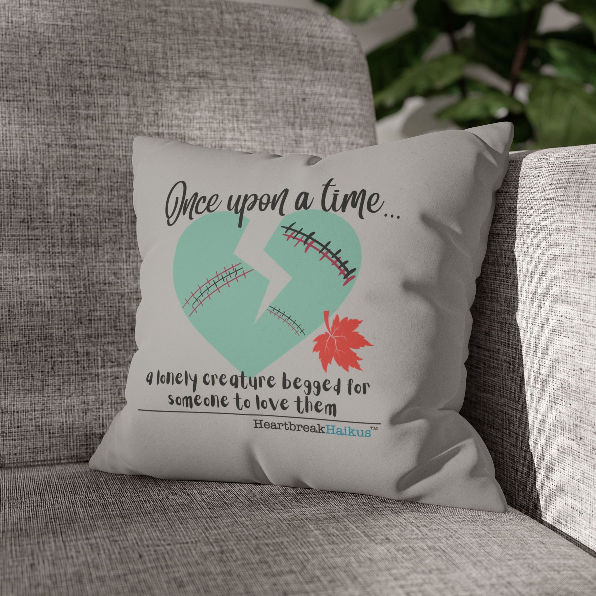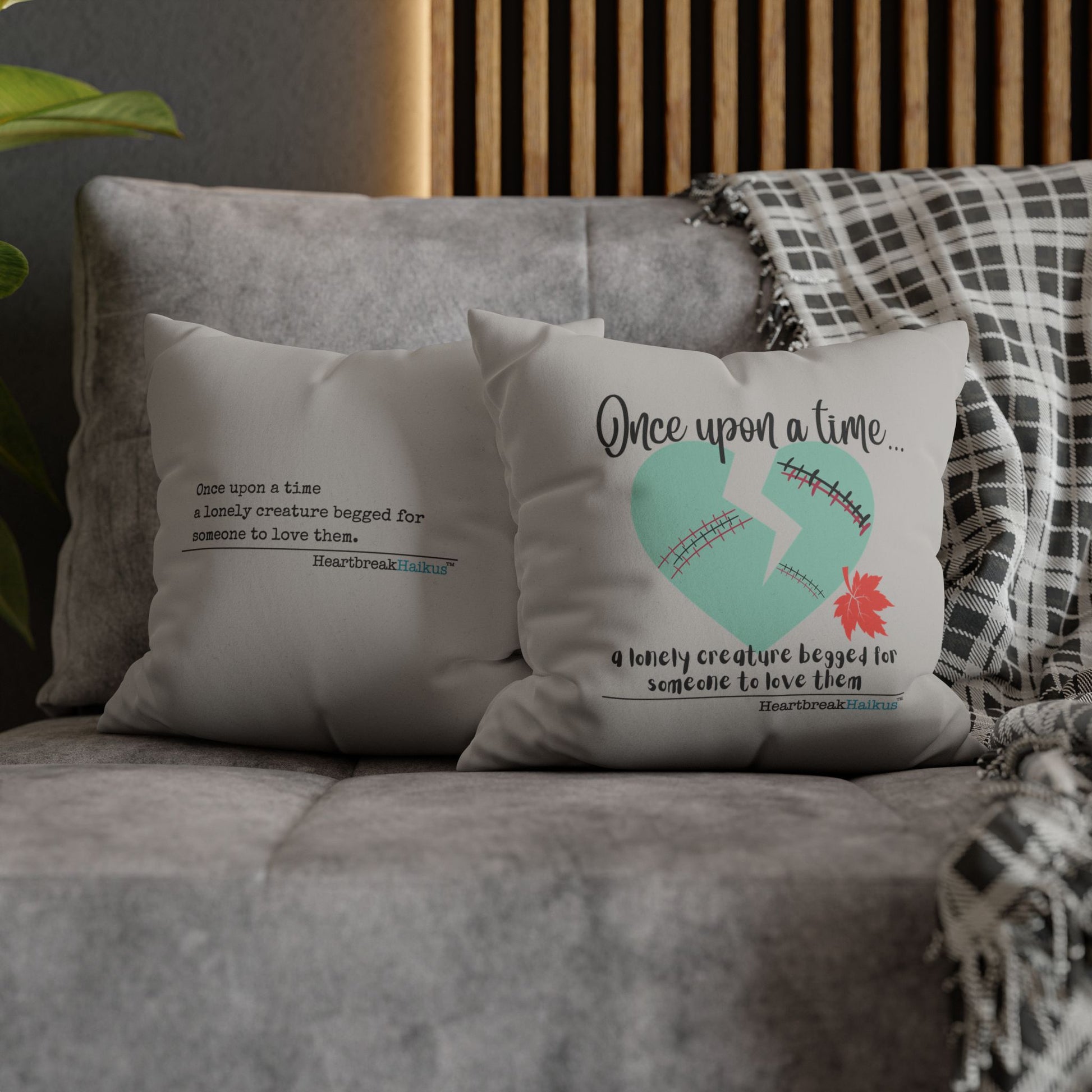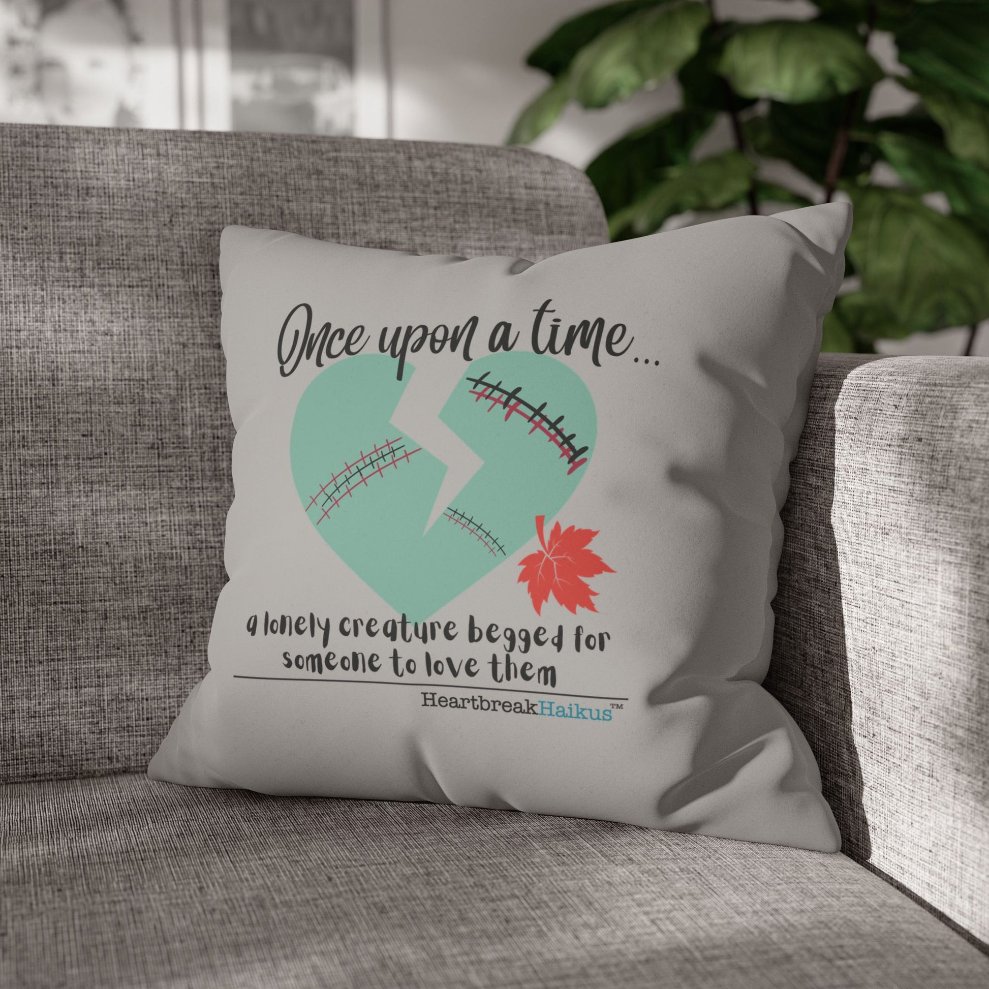 These beautiful indoor pillowcases are statement pieces, creating a personalized environment in bedrooms, living rooms, dens, and offices. Velvety soft for ultimate snuggles and comforting. Display on design side or poem only vintage typewriter font. Already own a HeartbreakHaikus throw pillow? Add to your collection with additional pillow cases! Great in sets of 2 for styling options.