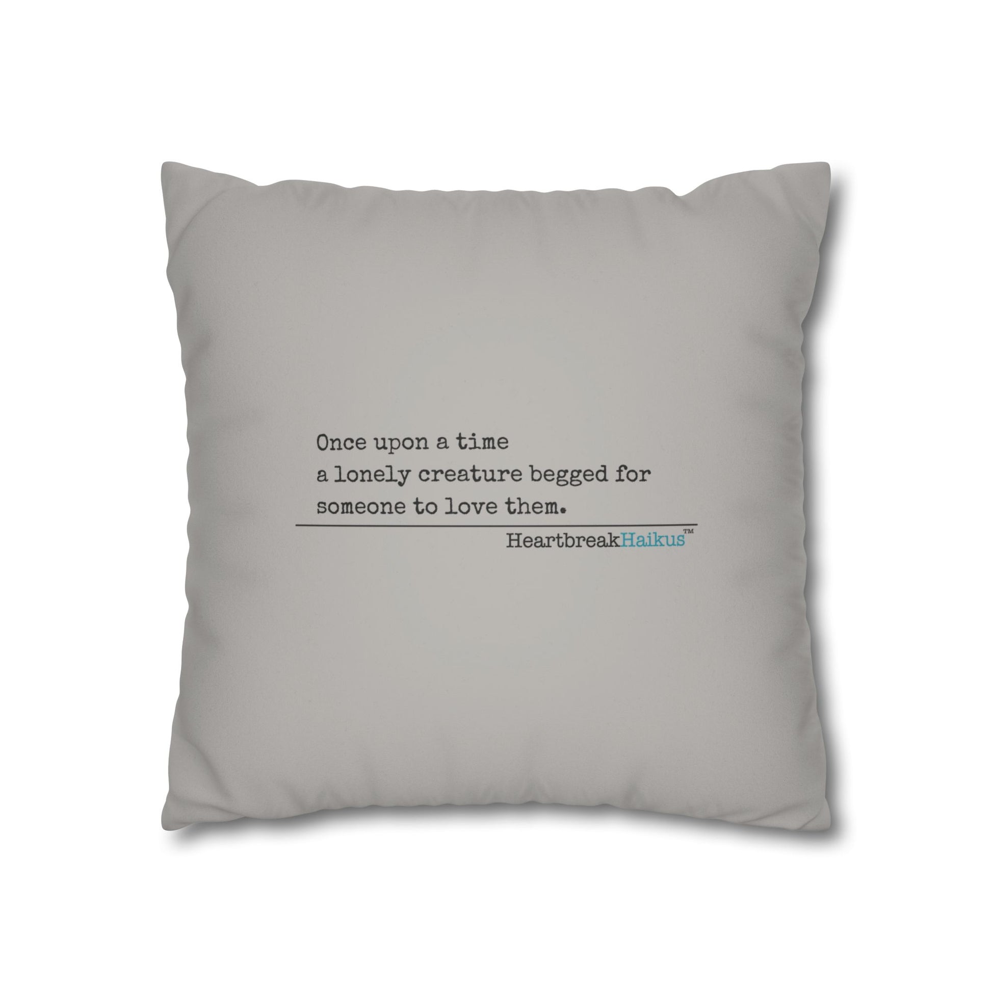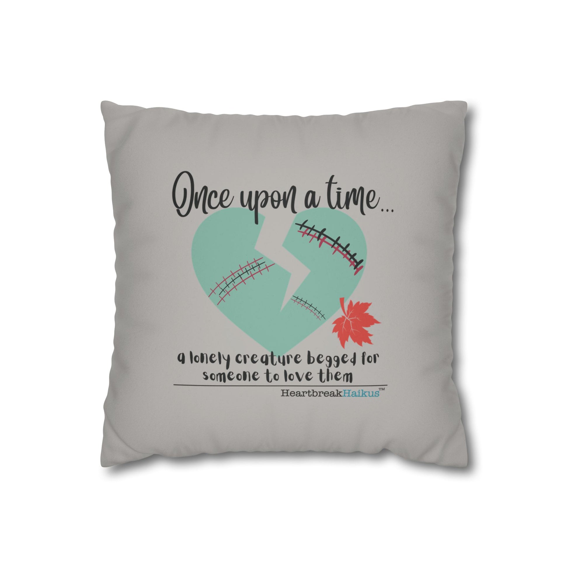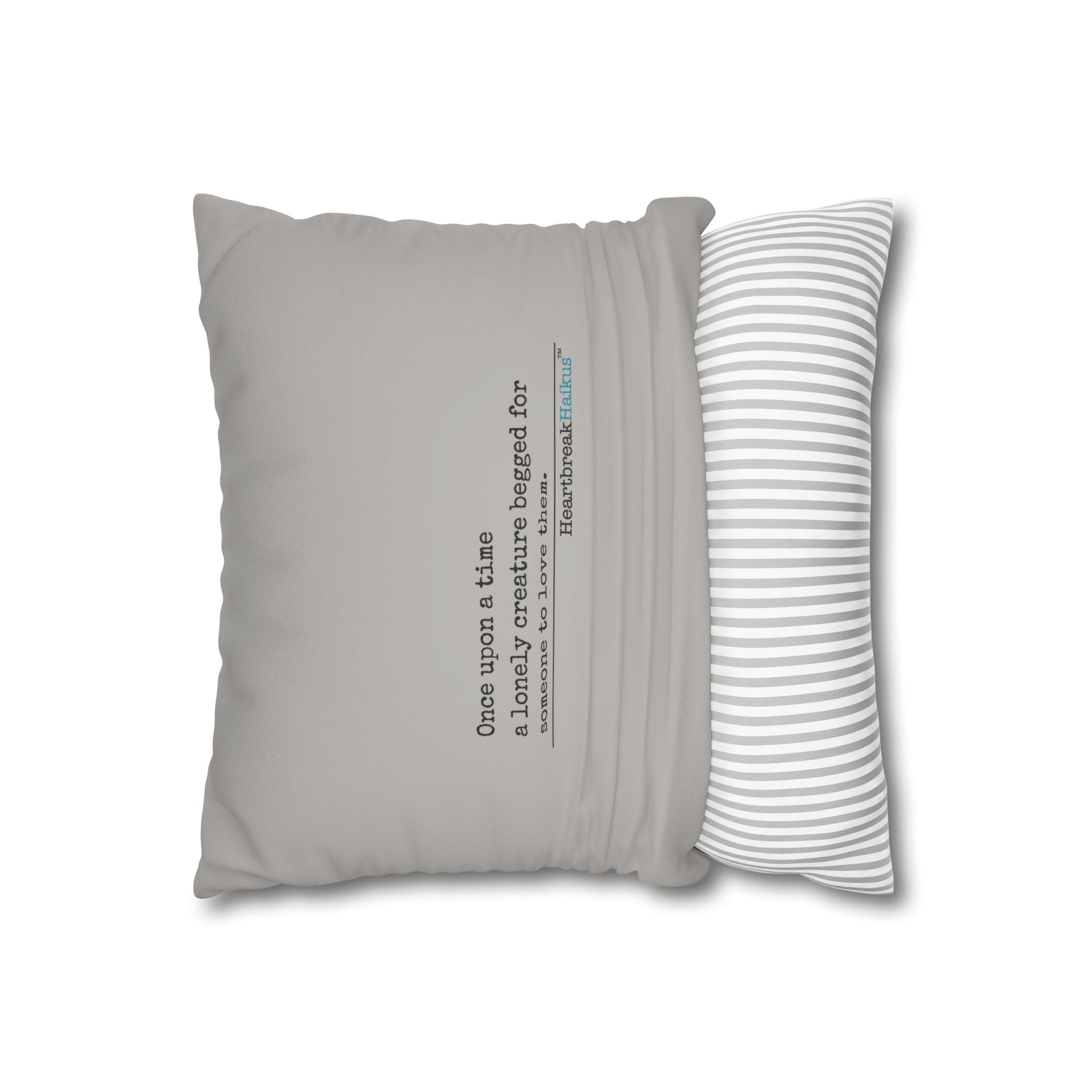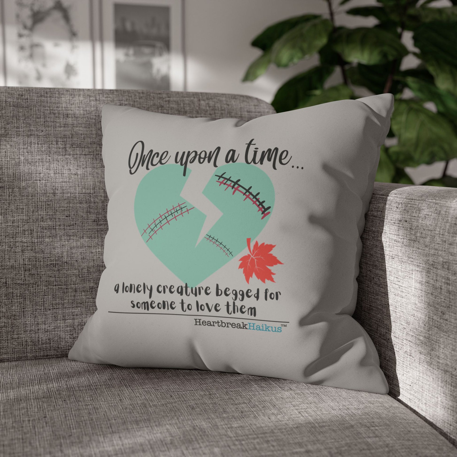 These beautiful indoor pillowcases are statement pieces, creating a personalized environment in bedrooms, living rooms, dens, and offices. Velvety soft for ultimate snuggles and comforting. Display on design side or poem only vintage typewriter font. Already own a HeartbreakHaikus throw pillow? Add to your collection with additional pillow cases! Great in sets of 2 for styling options.
