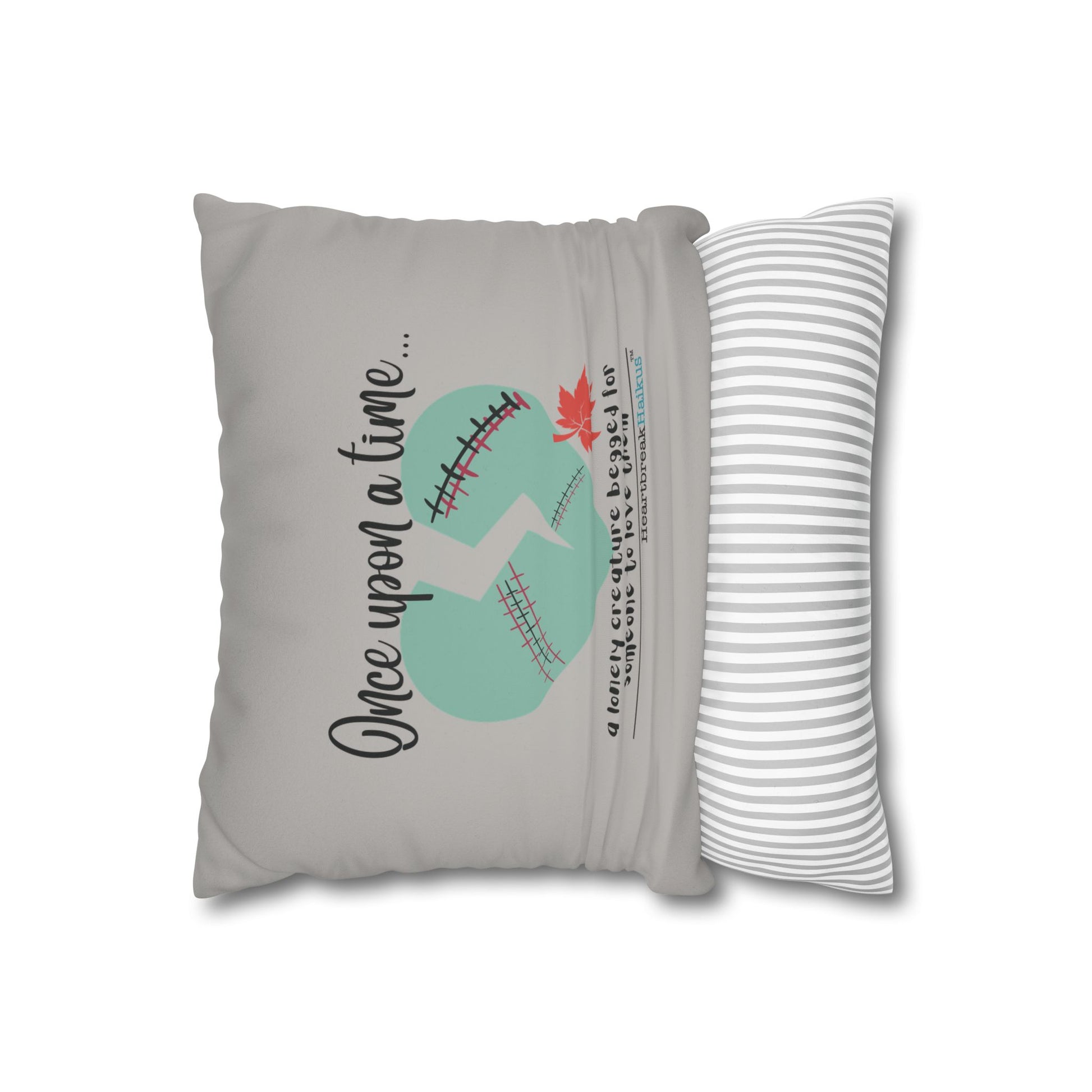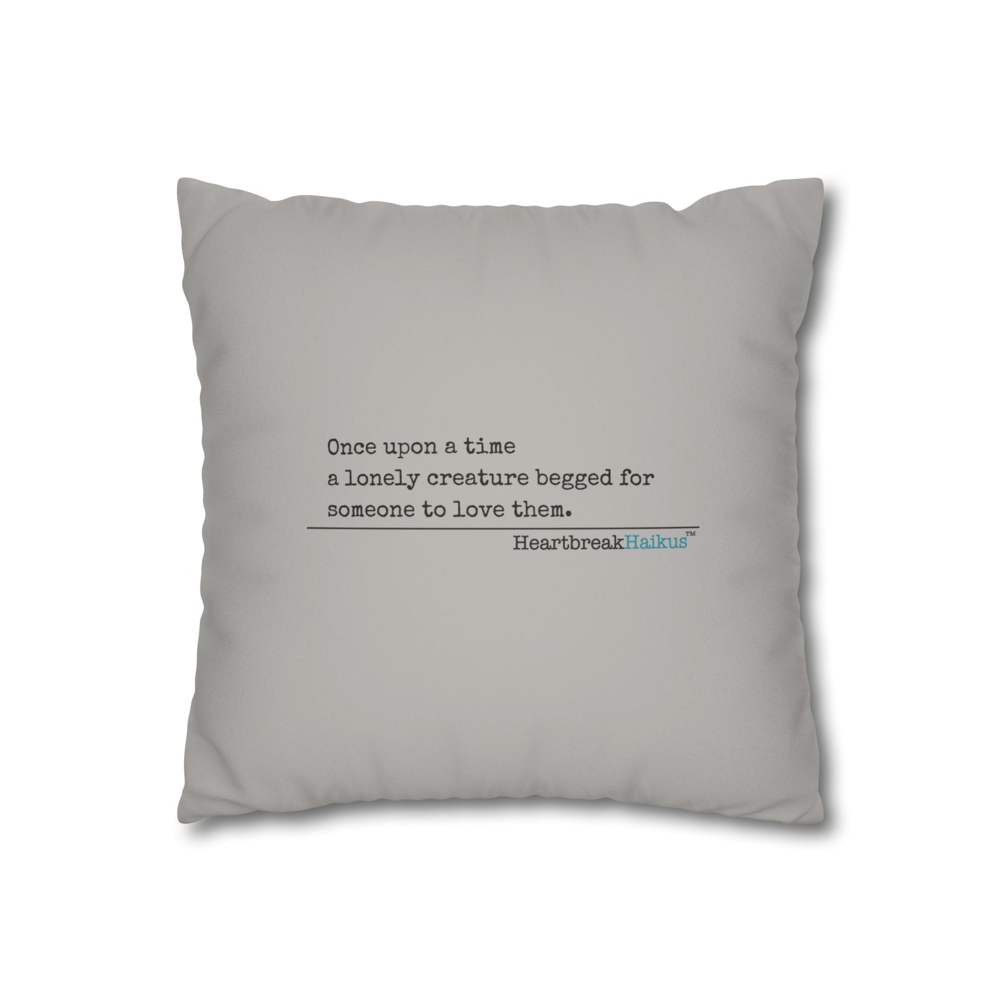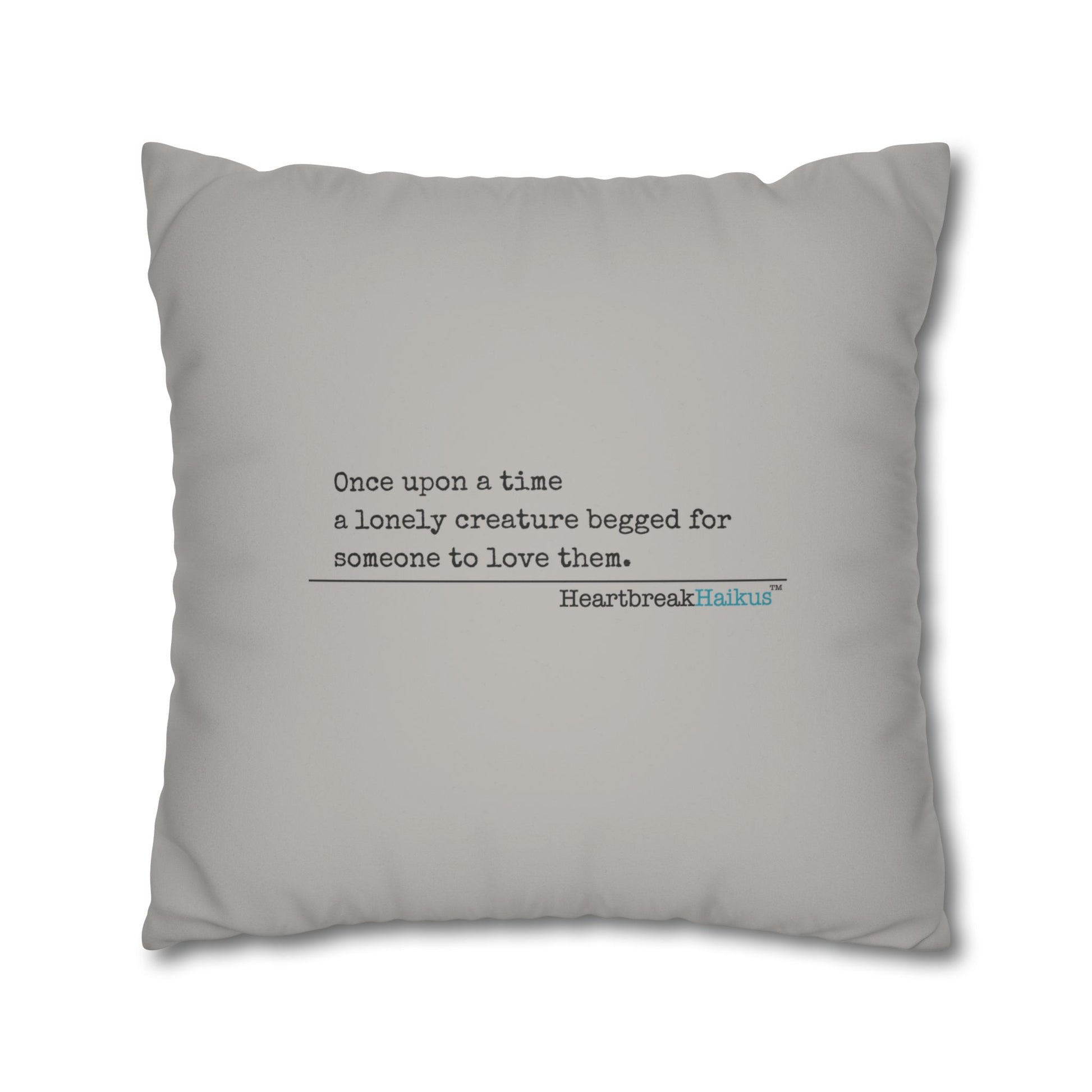 A Lonely Creature Begged Frankenstein Haiku - Faux Suede Square Pillowcase (in Light Grey) (Frankenstein 2025 Makeover)