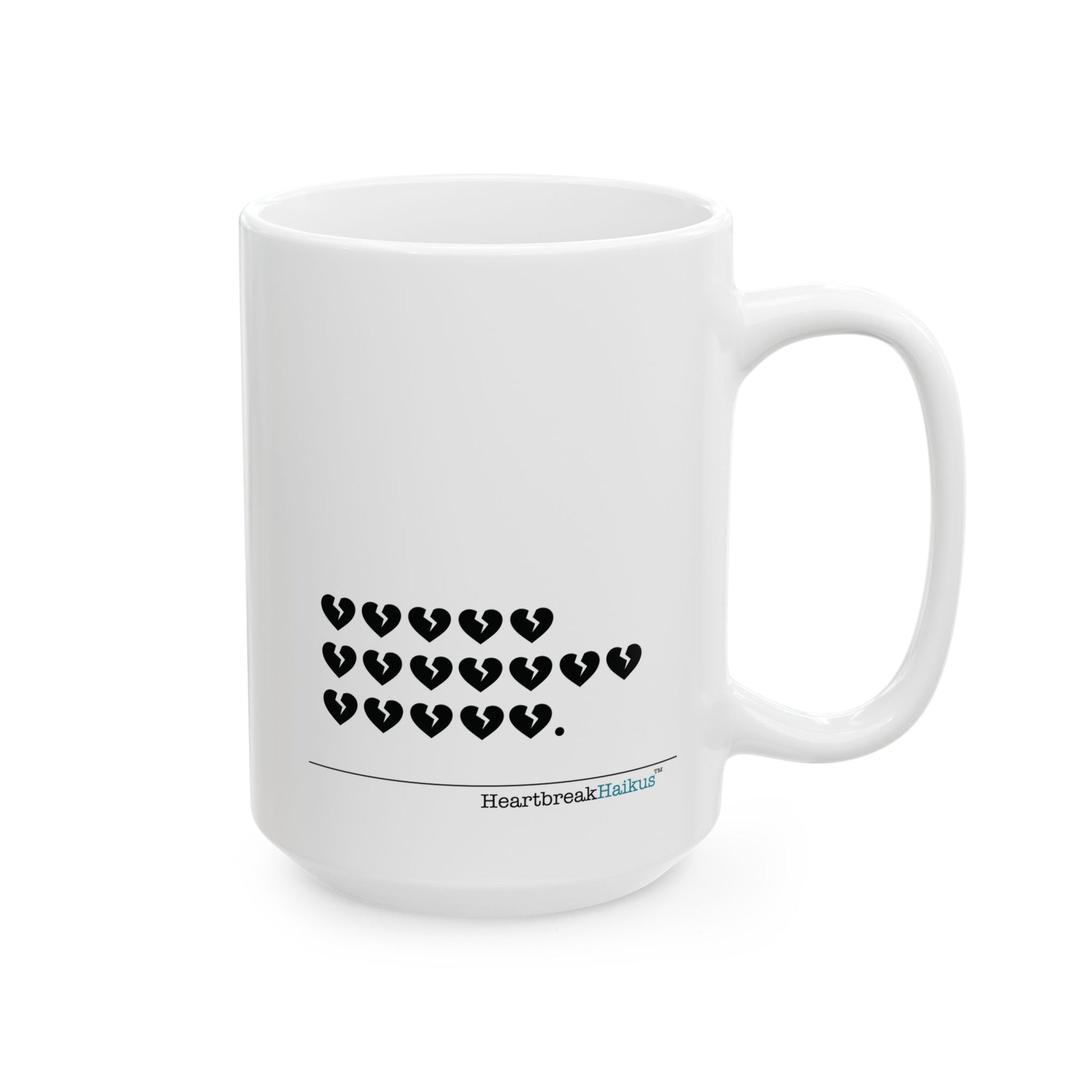 Dual-Design Ceramic Mug (11oz or 15oz, "...hieroglyph heartbreak haiku.")