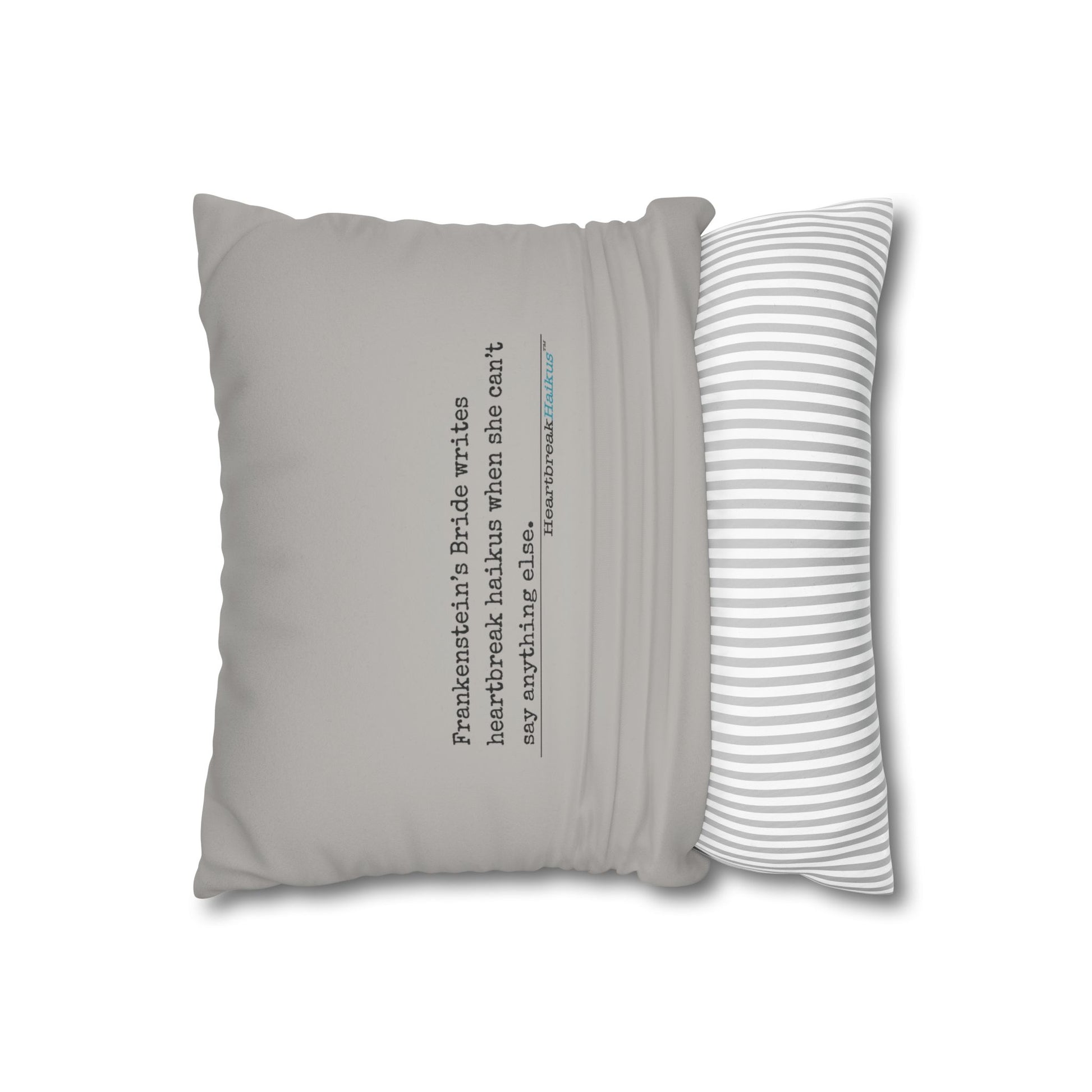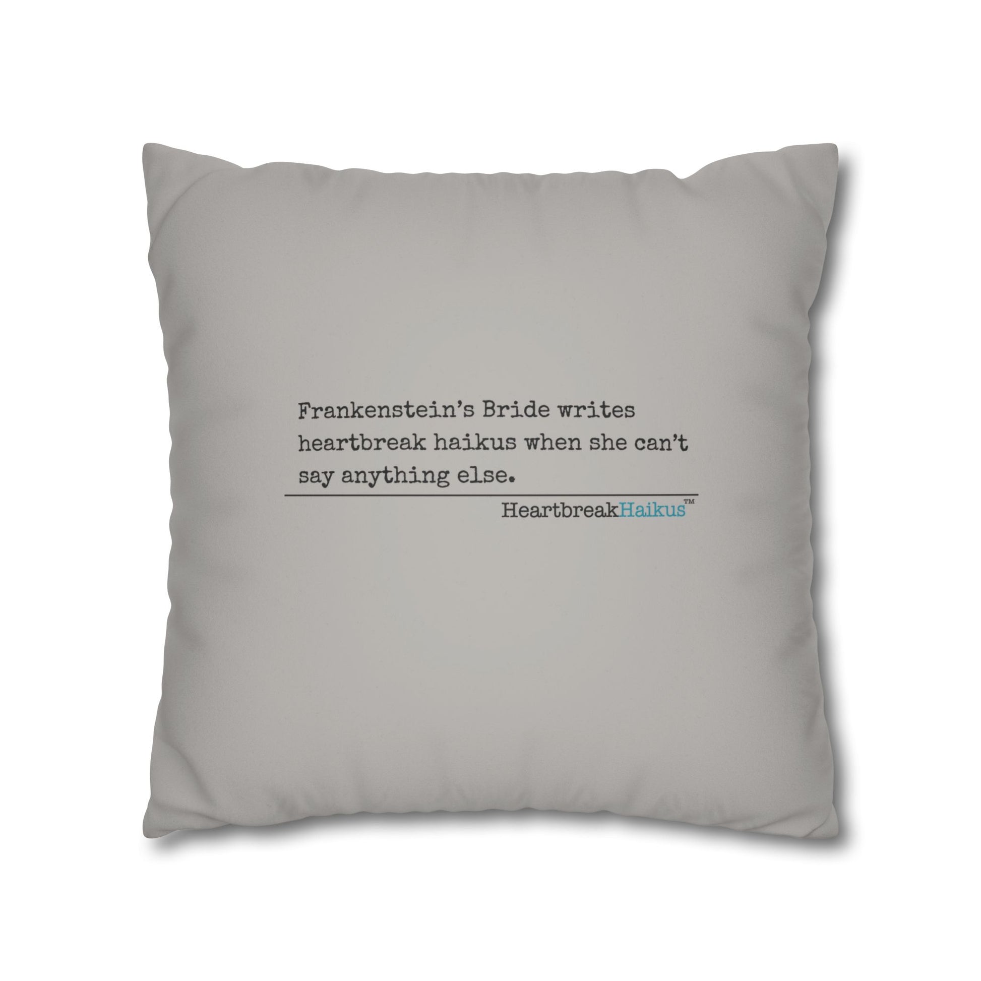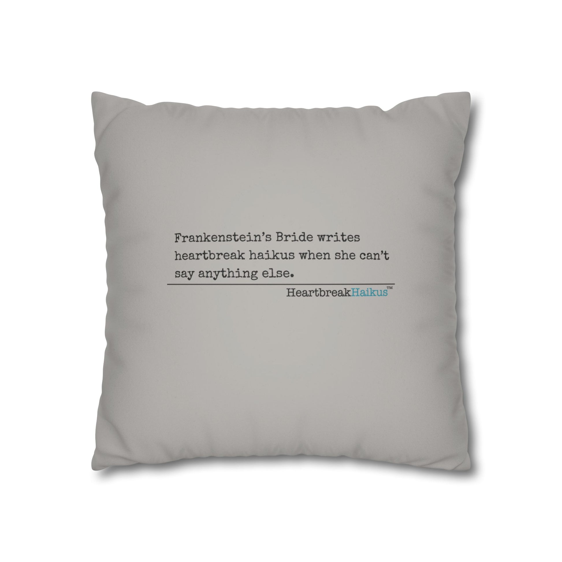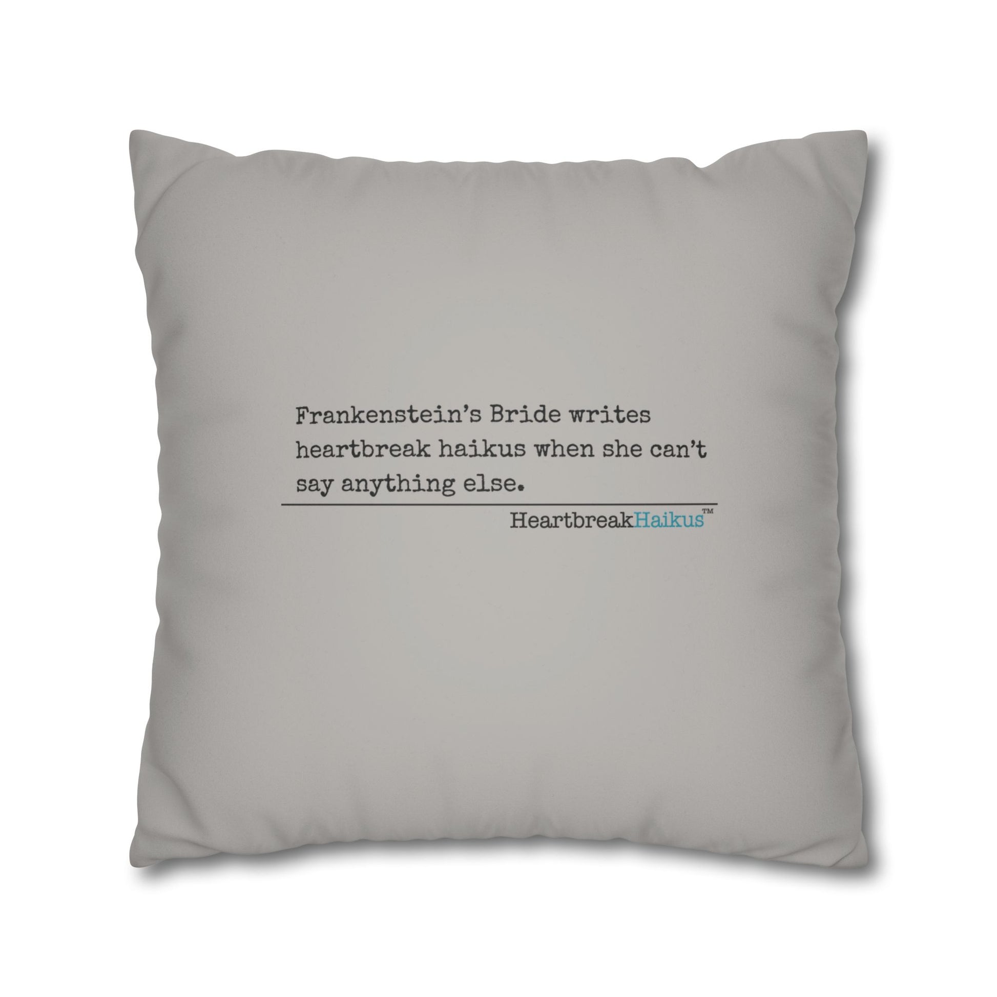 Frankenstein's Bride Writes Heartbreak Haikus - Faux Suede Square Pillowcase (in light grey)