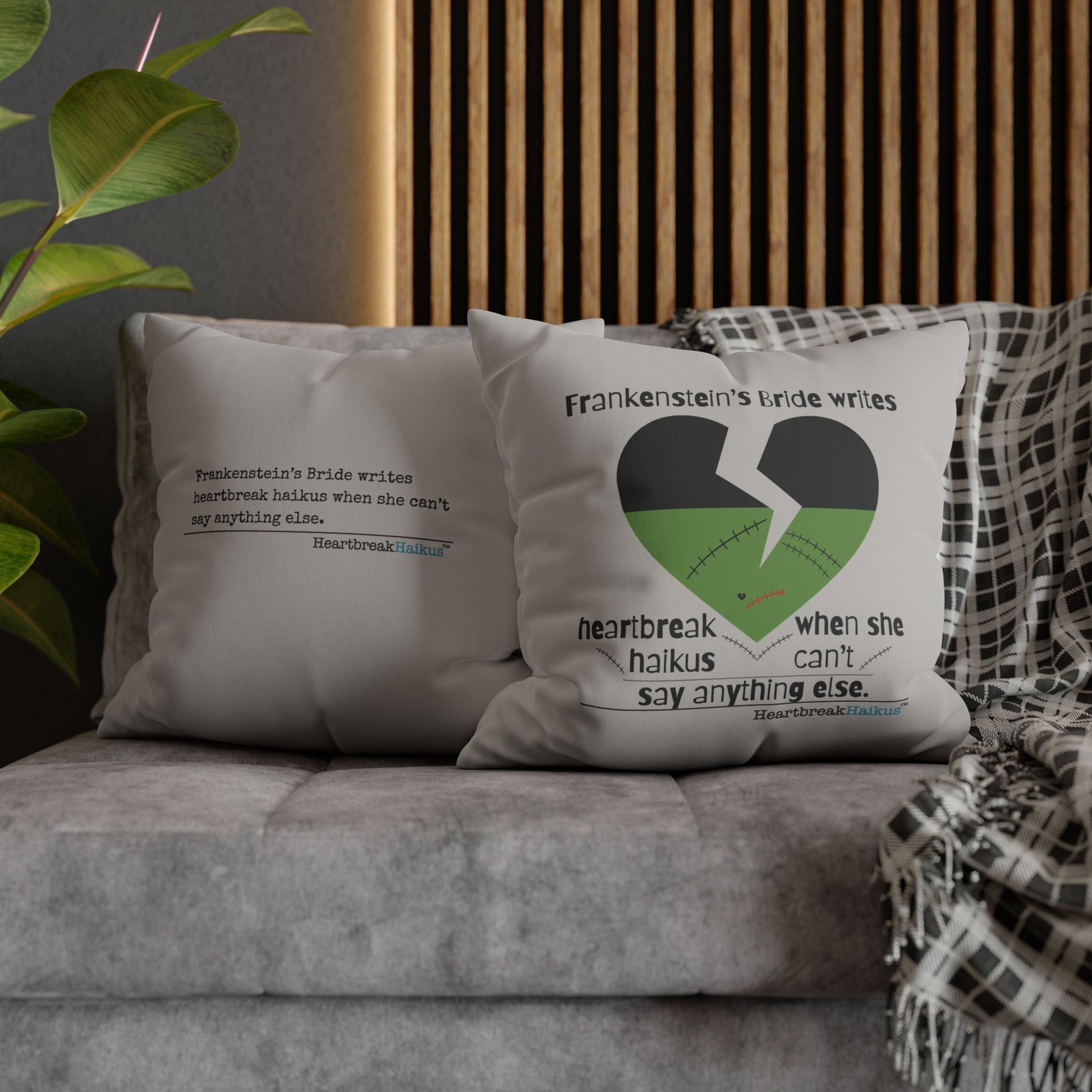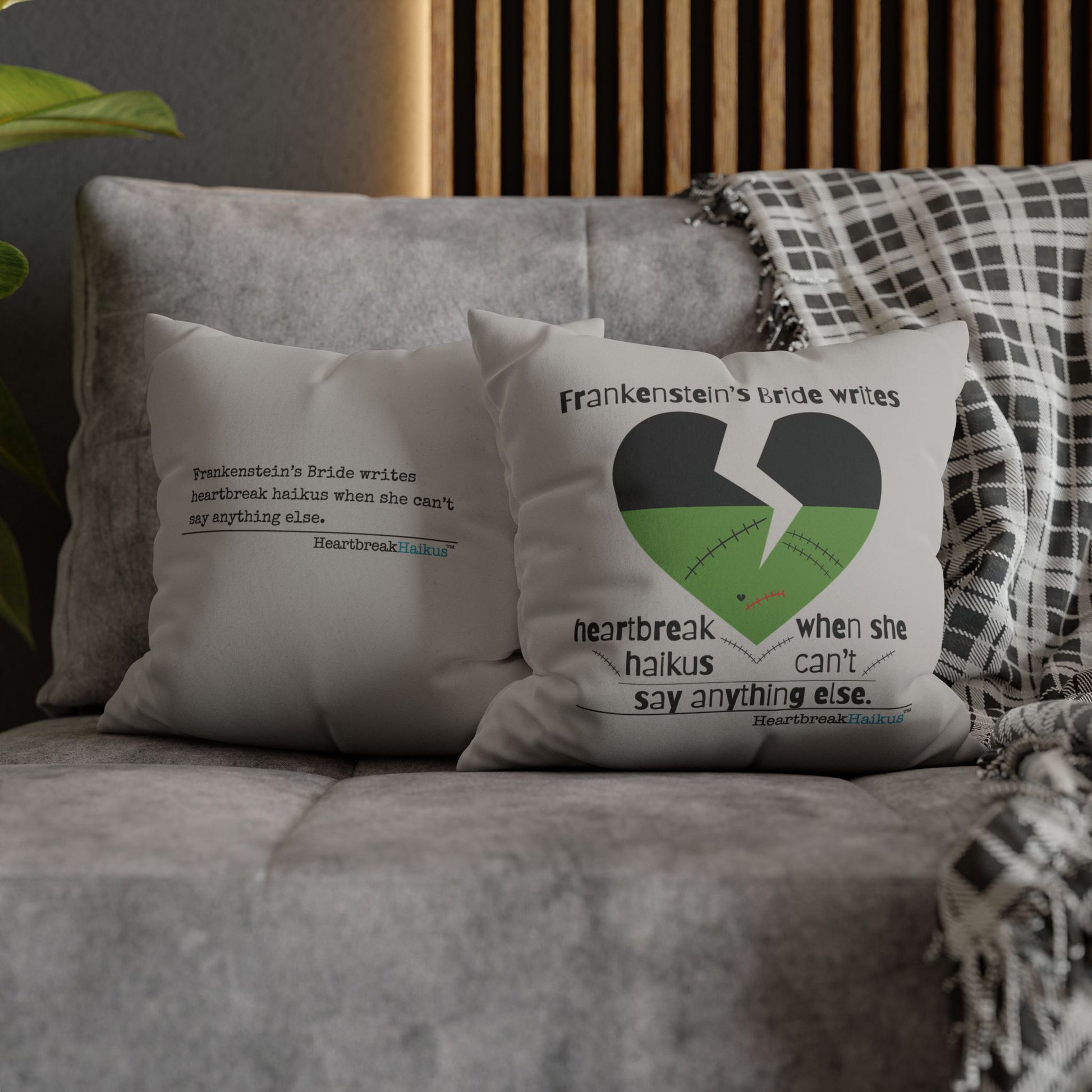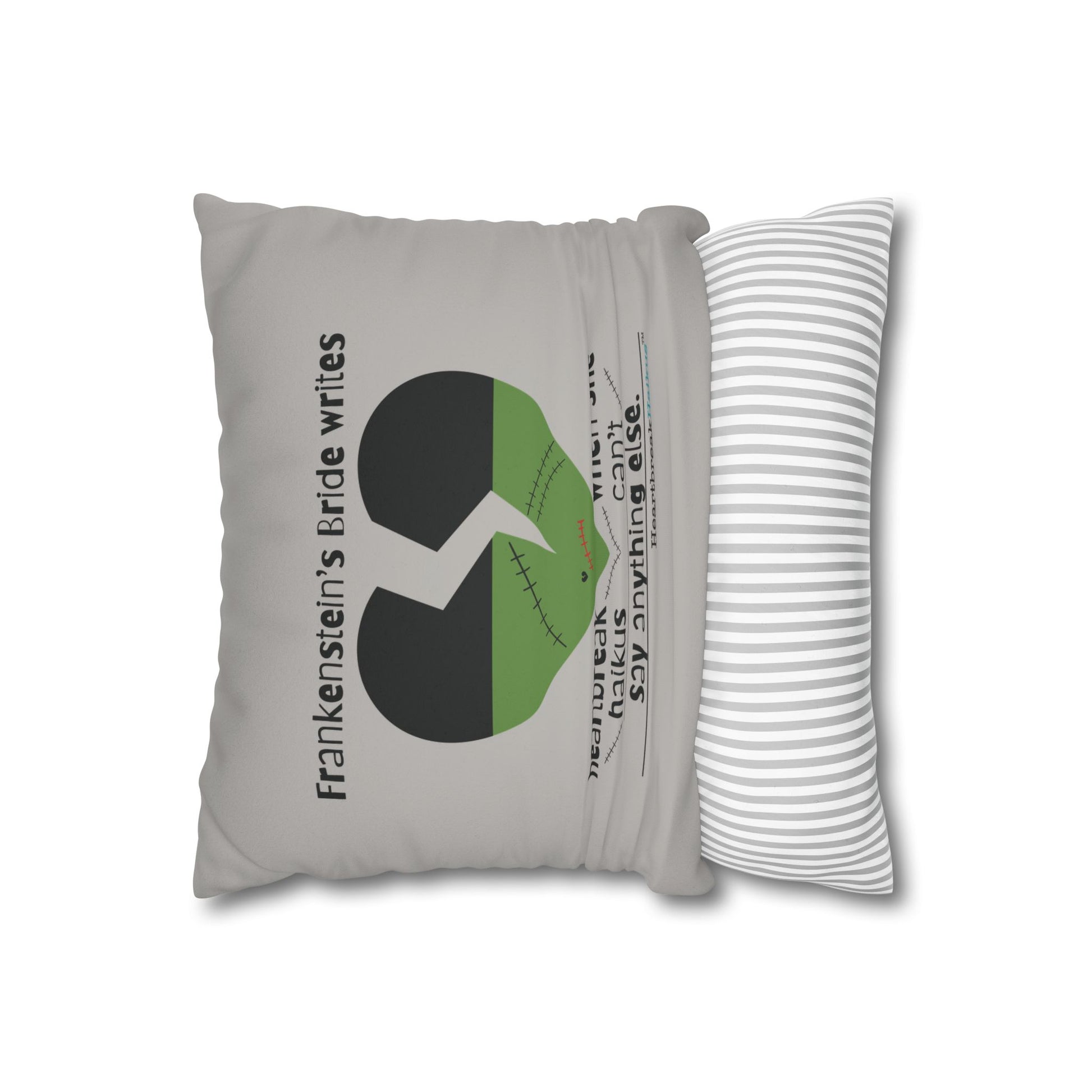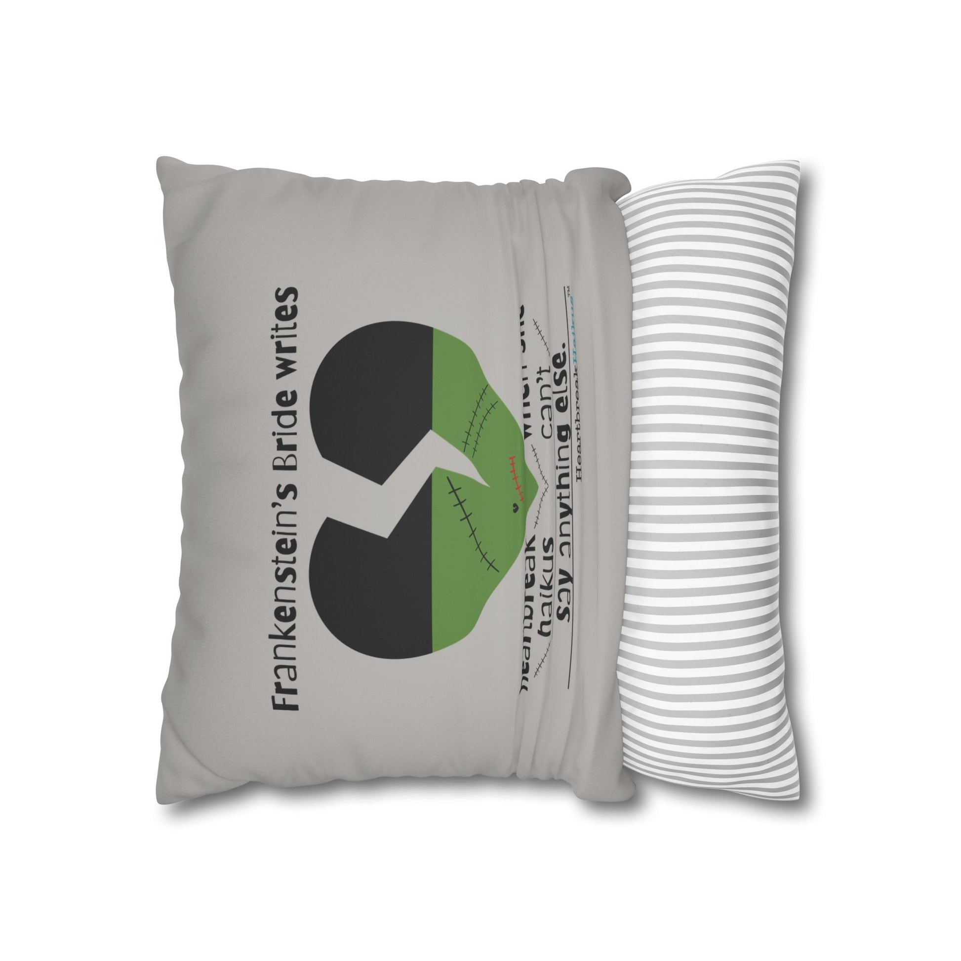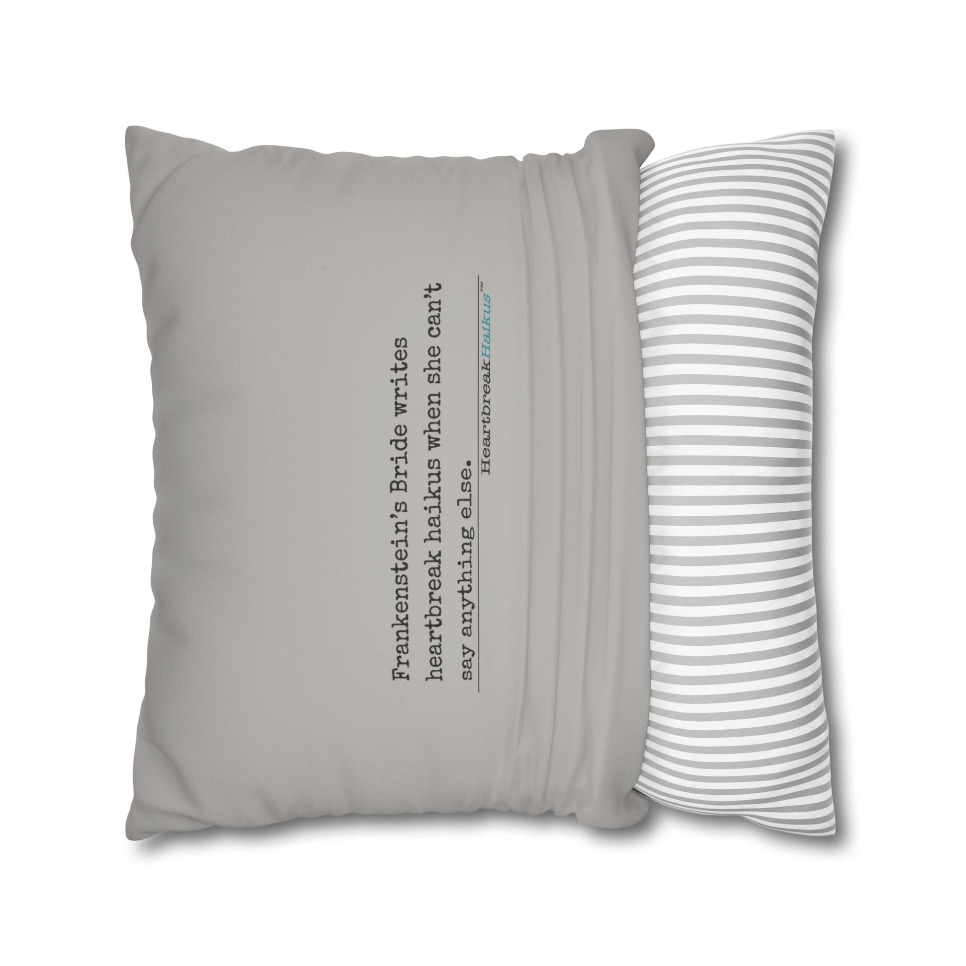 Frankenstein's Bride Writes Heartbreak Haikus - Faux Suede Square Pillowcase (in light grey)