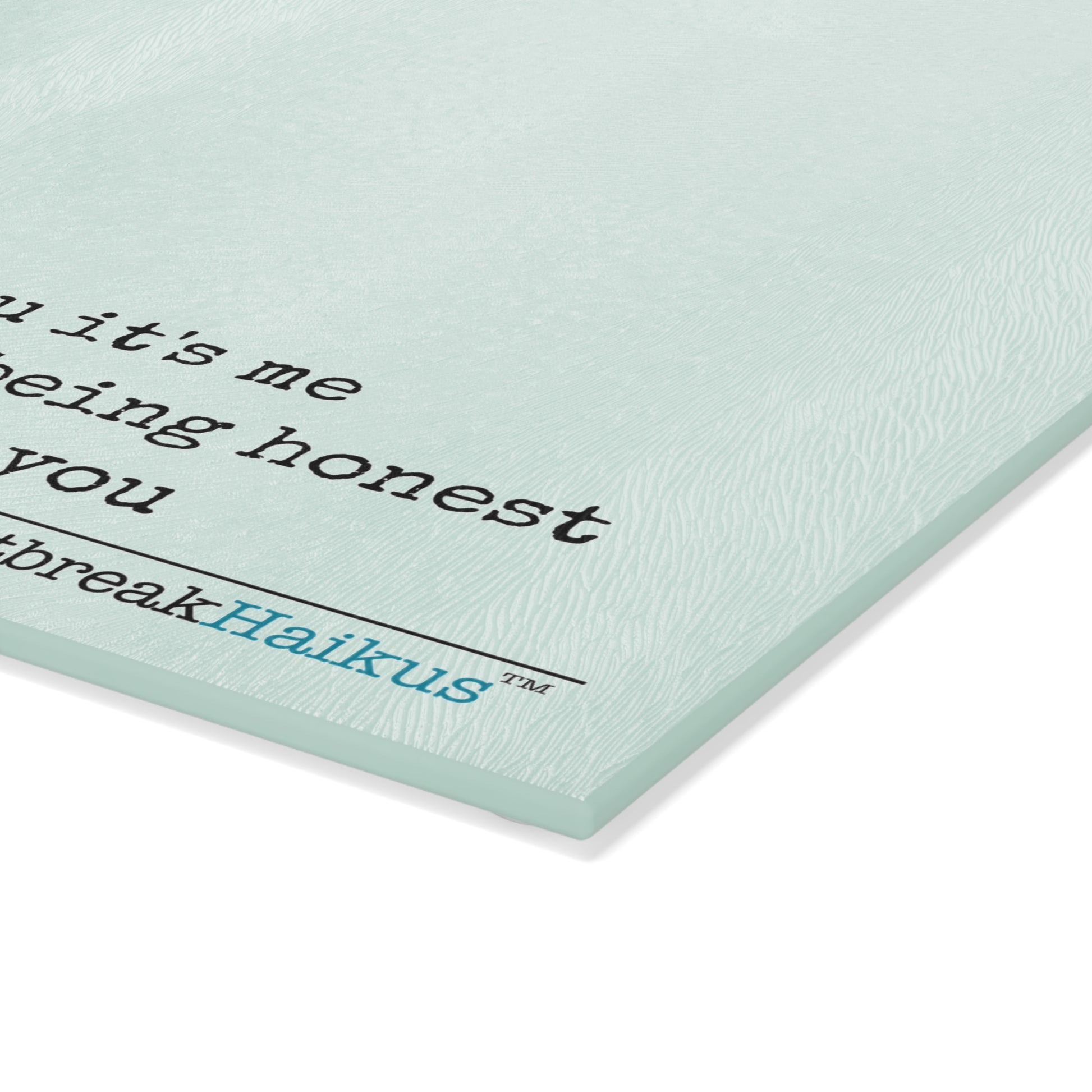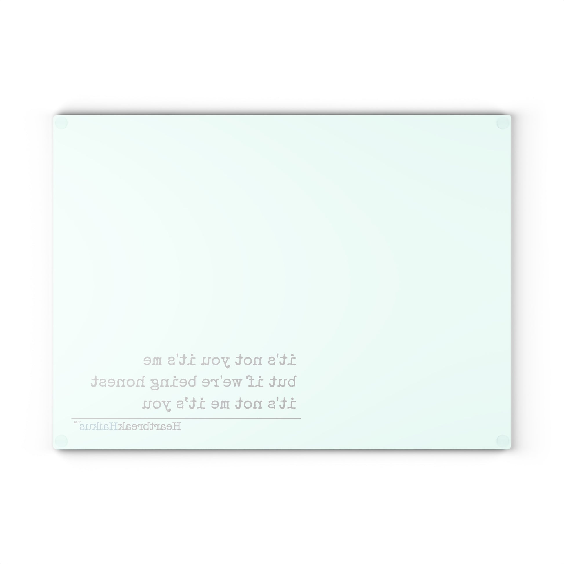 This cutting board features an original Heartbreak Haiku, perfect for adding a touch of creativity to your kitchen. The durable tempered glass material makes it a versatile preparation surface, while the vibrant colors and unique decoration process ensure a long-lasting design. Ideal for those who appreciate artistic touches in their home decor. Perfect for Valentine's Day, birthdays, or housewarming gifts after breakups or divorce.