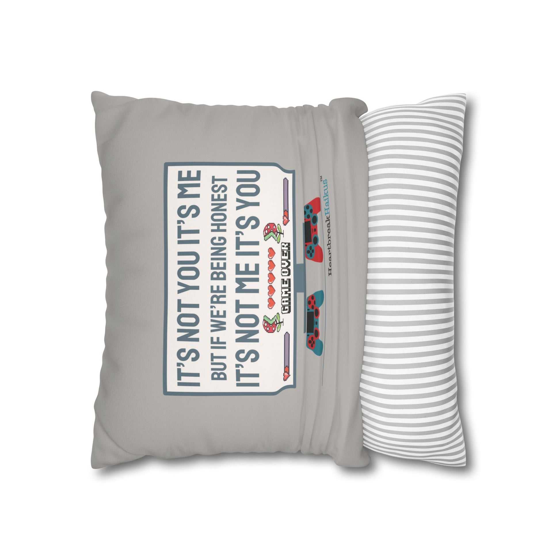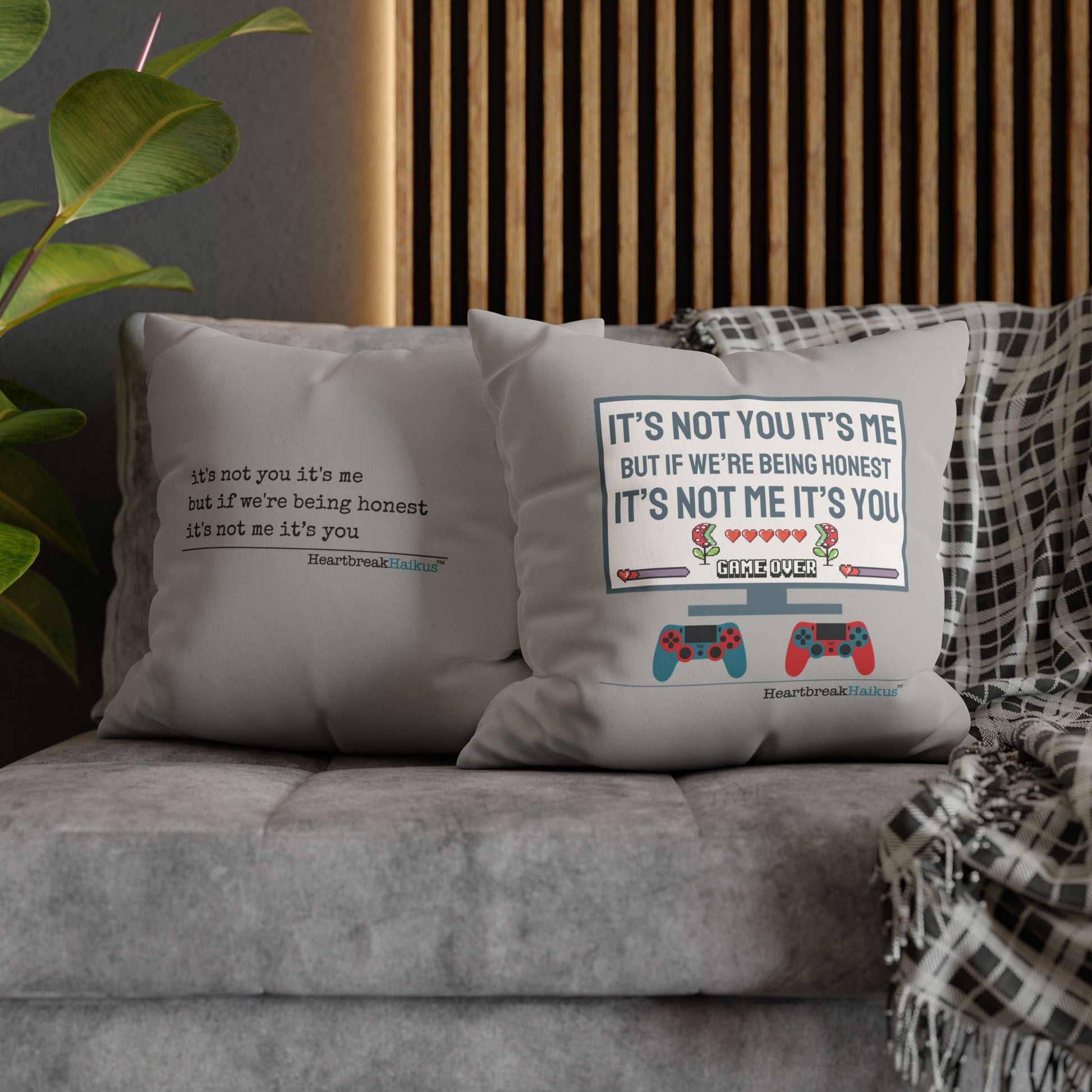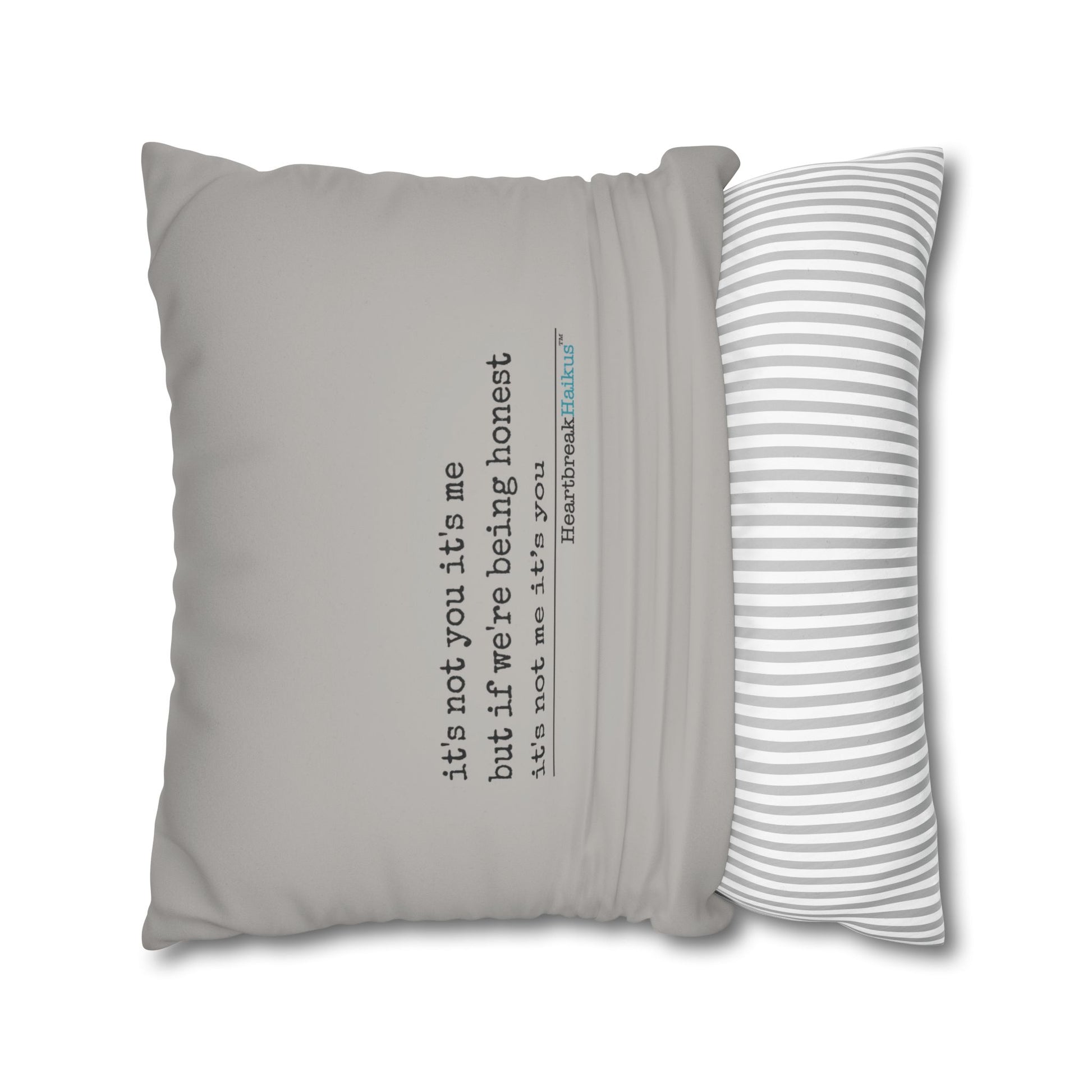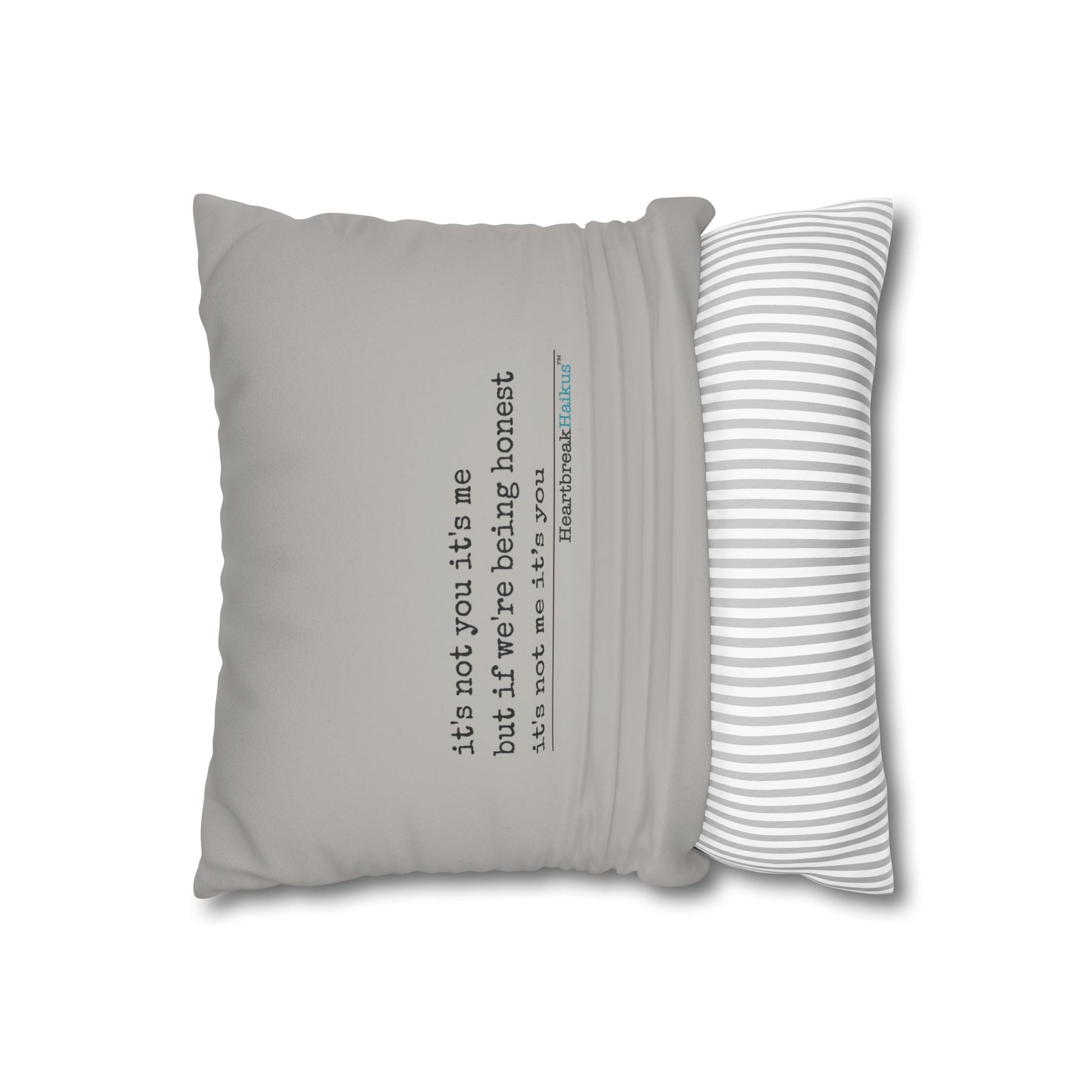 These beautiful indoor pillowcases are statement pieces, creating a personalized environment in bedrooms, living rooms, dens, and offices. Velvety soft for ultimate snuggles and comforting. Display on design side or poem only vintage typewriter font. Already own a HeartbreakHaikus throw pillow? Add to your collection with additional pillow cases! Great in sets of 2 for styling options.