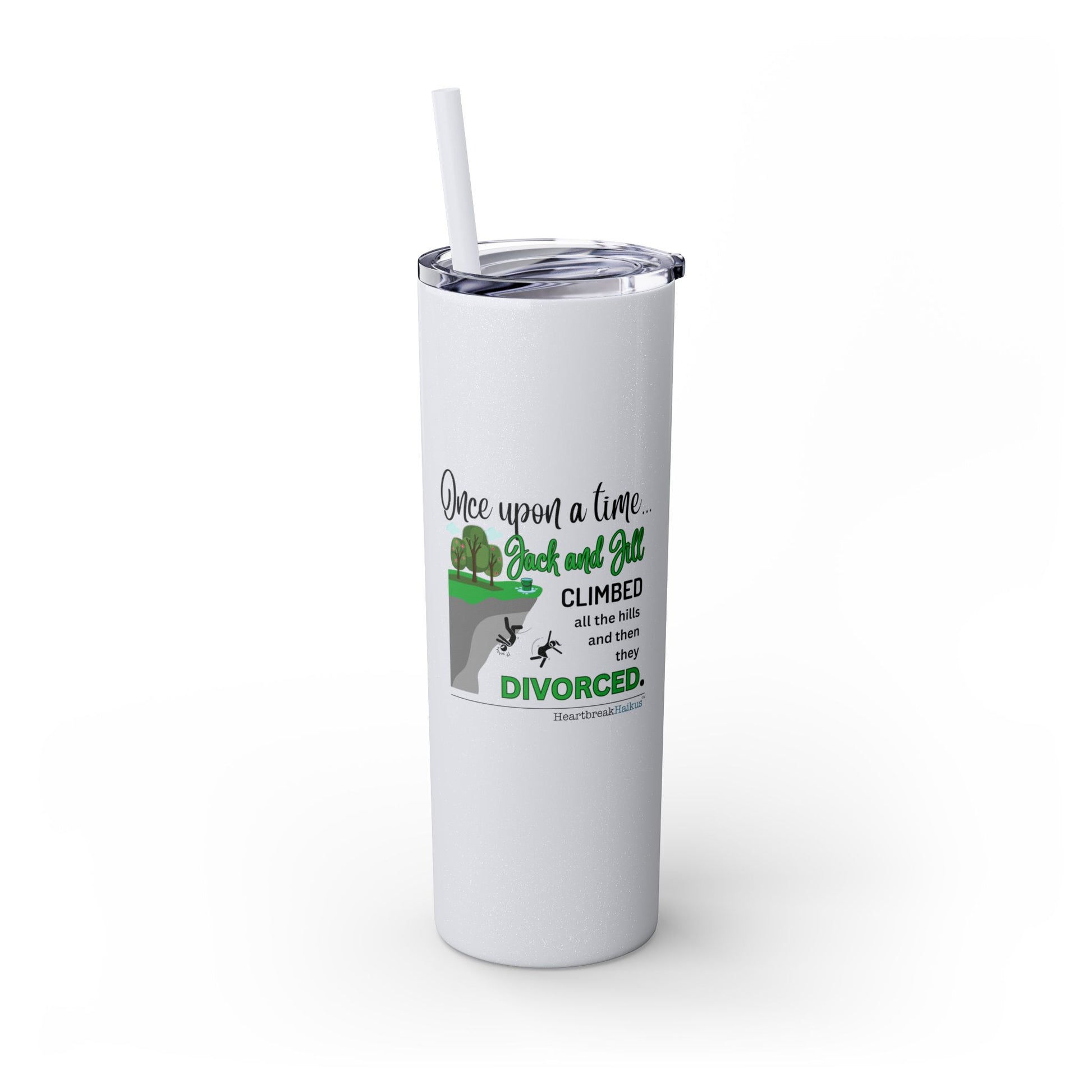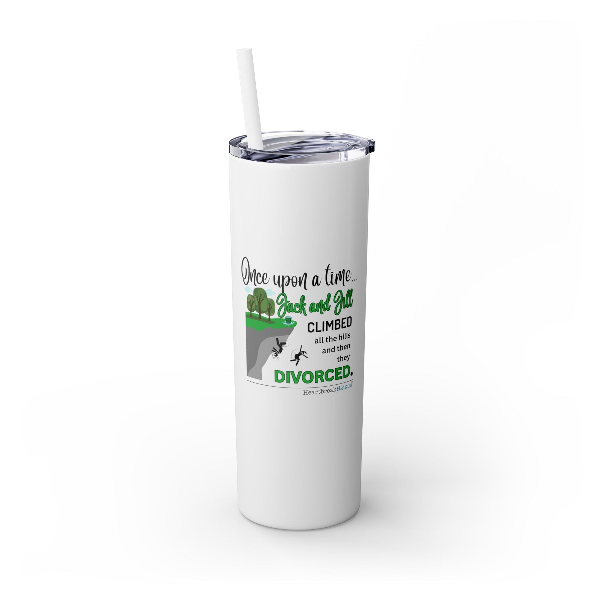 Jack and Jill Divorced Haiku - Skinny Venti Tumbler with Eco-Friendly, Reusable, Matching Straw, 20oz
