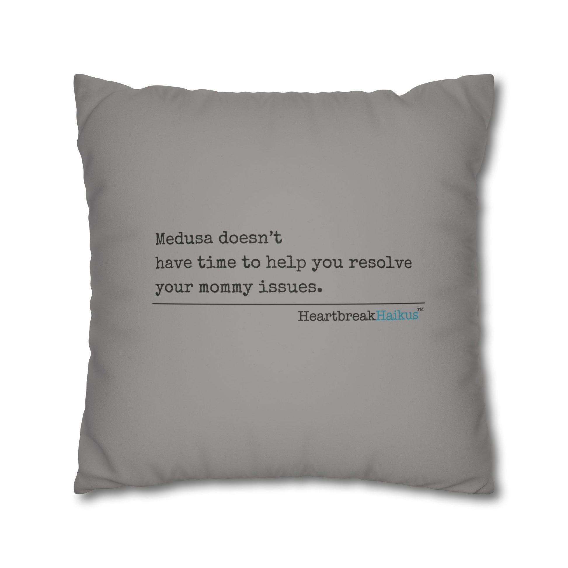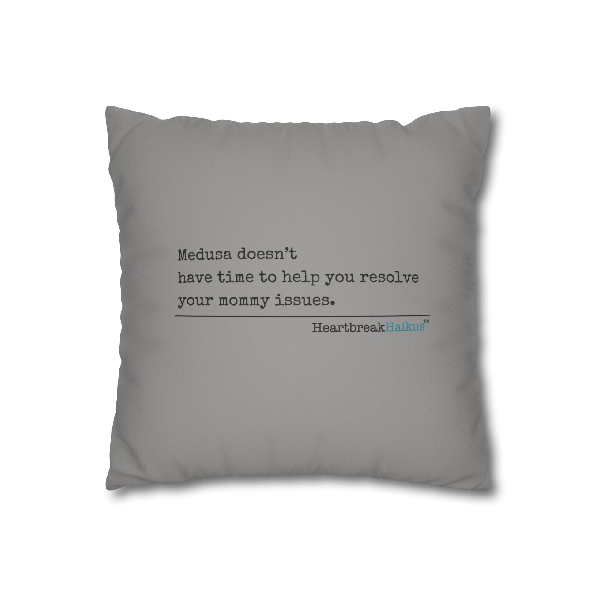 Medusa and Your Mommy Haiku - Faux Suede Square Pillowcase in Stone Grey