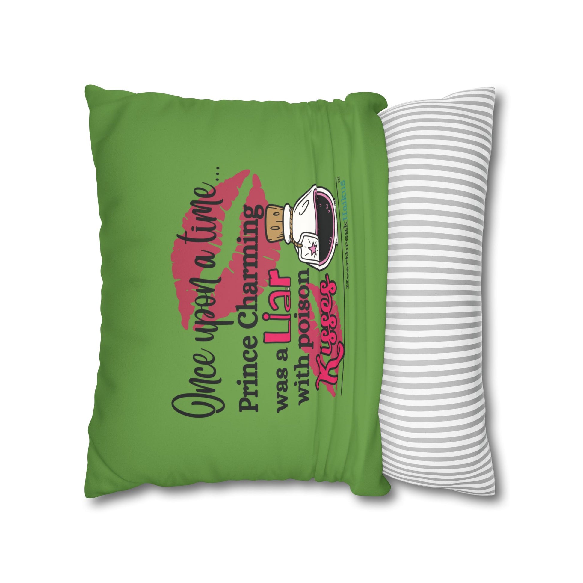 Prince Charming's Poison Kisses - Faux Suede Square Pillowcase (in Wicked Green)