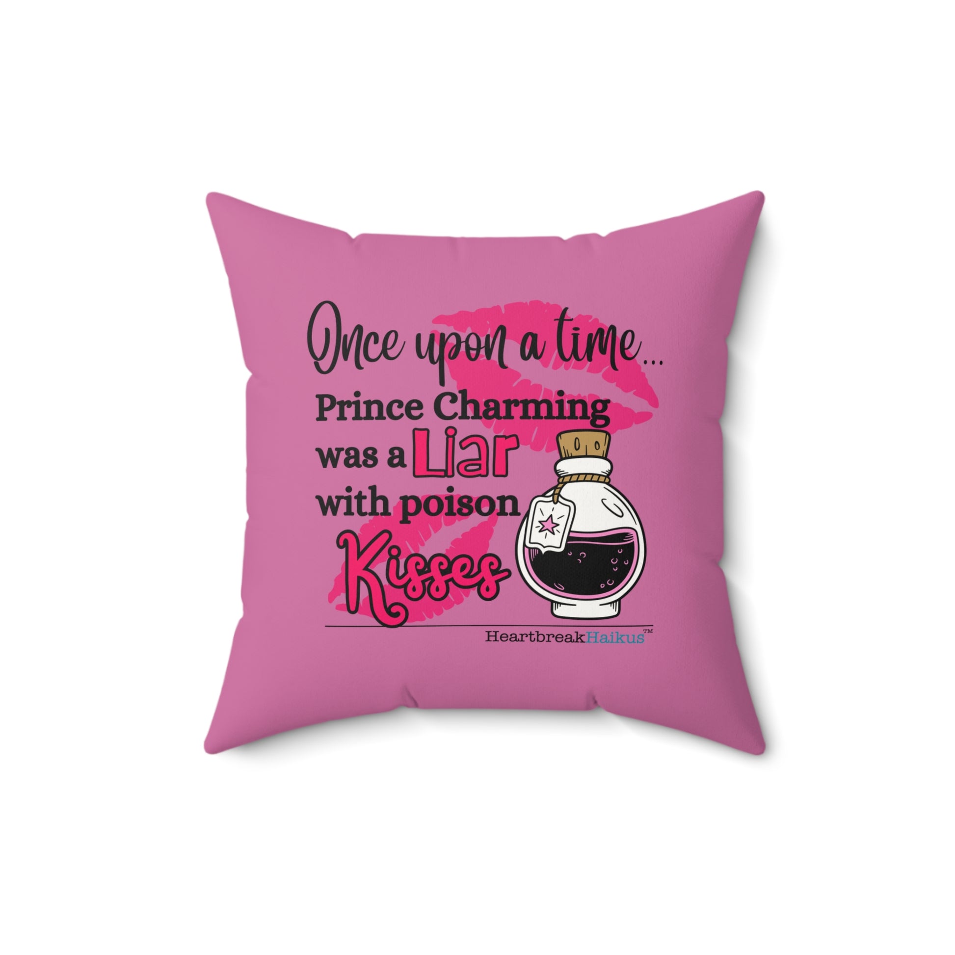 Prince Charming's Poison Kisses Haiku - Faux Suede Square Pillow (in Candy Pink)