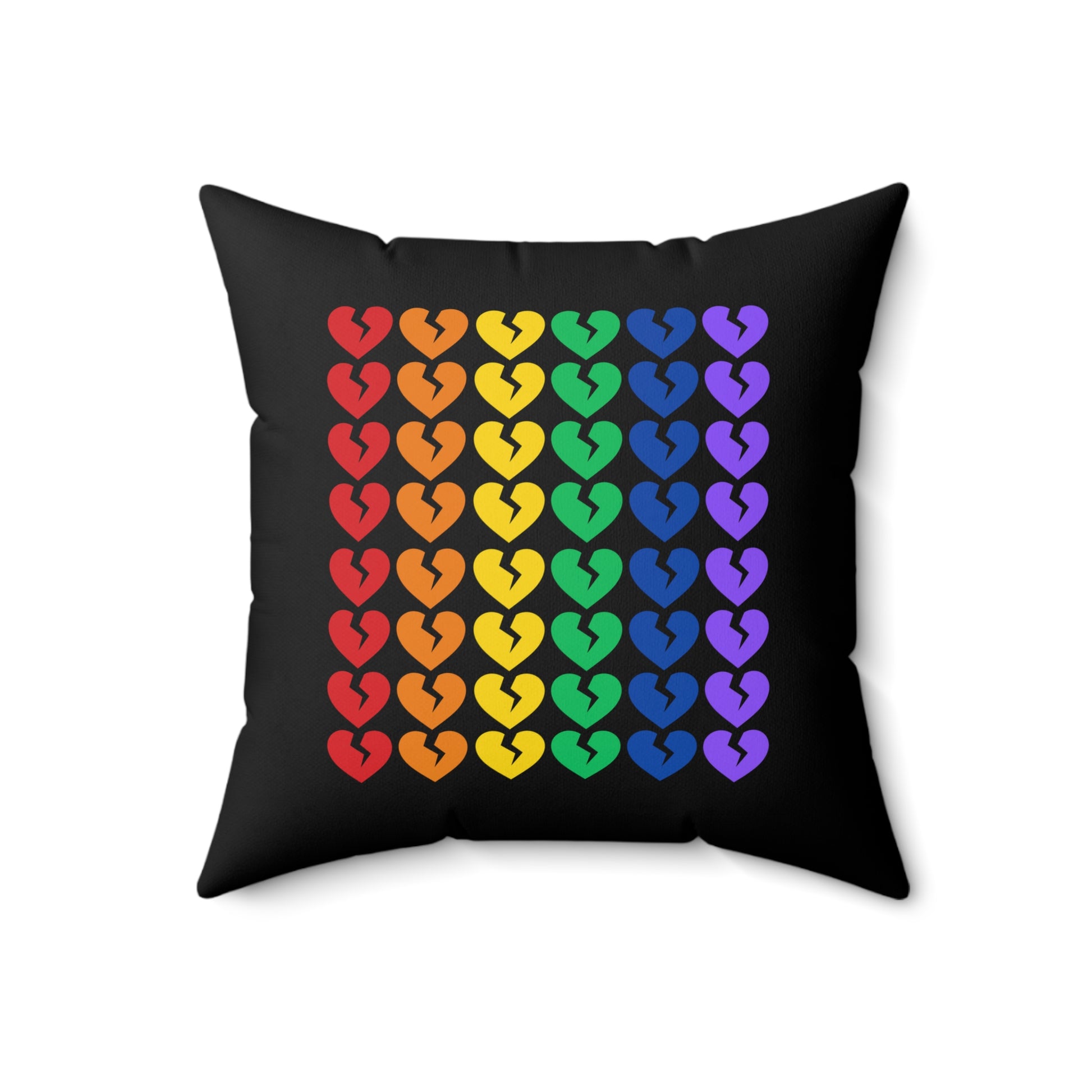 Rainbow Broken Hearts (on Midnight Black) - Faux Suede Square Pillow (Only Hearts Collection)