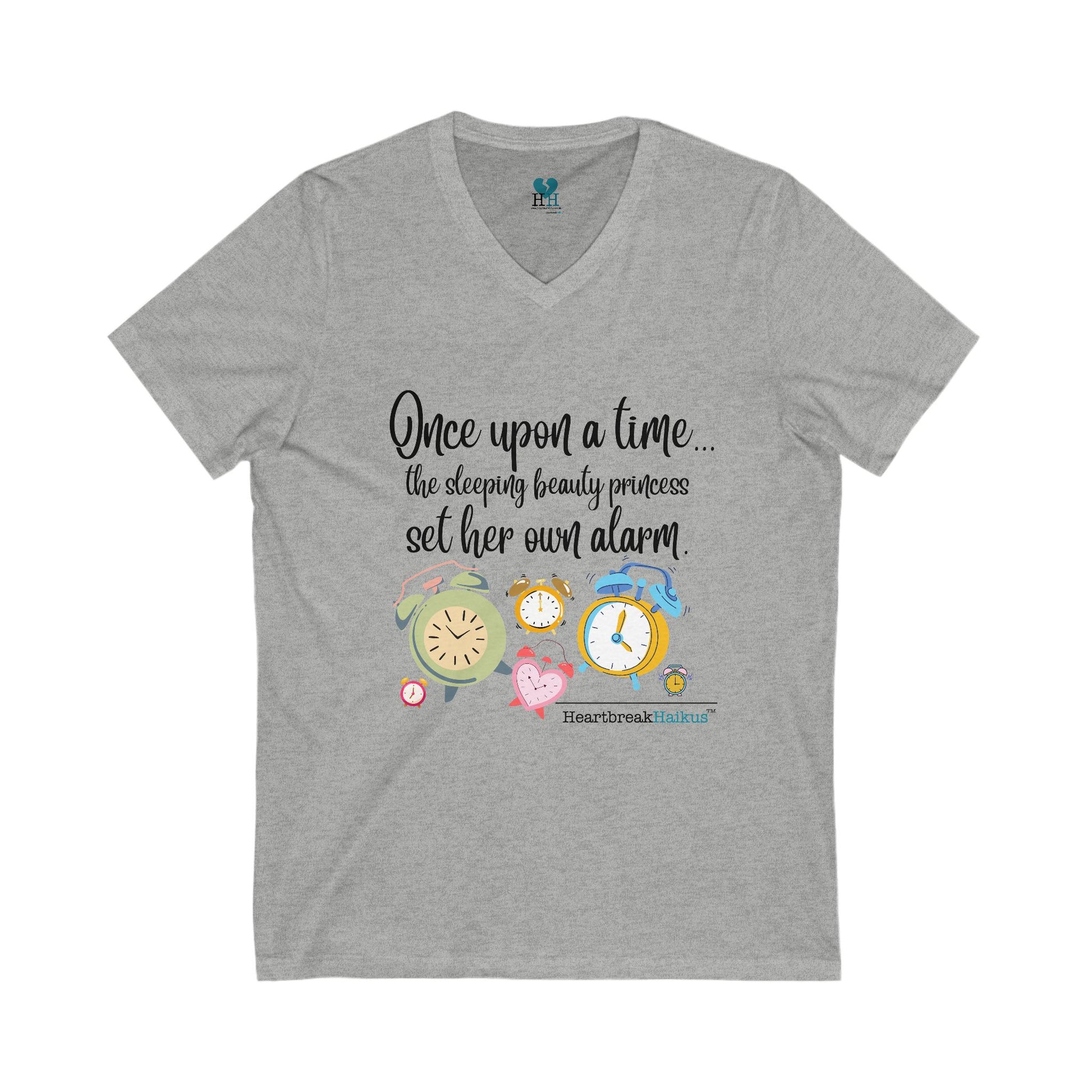 Sleeping Beauty's Alarm Haiku - Unisex Jersey Short Sleeve V-Neck Tee