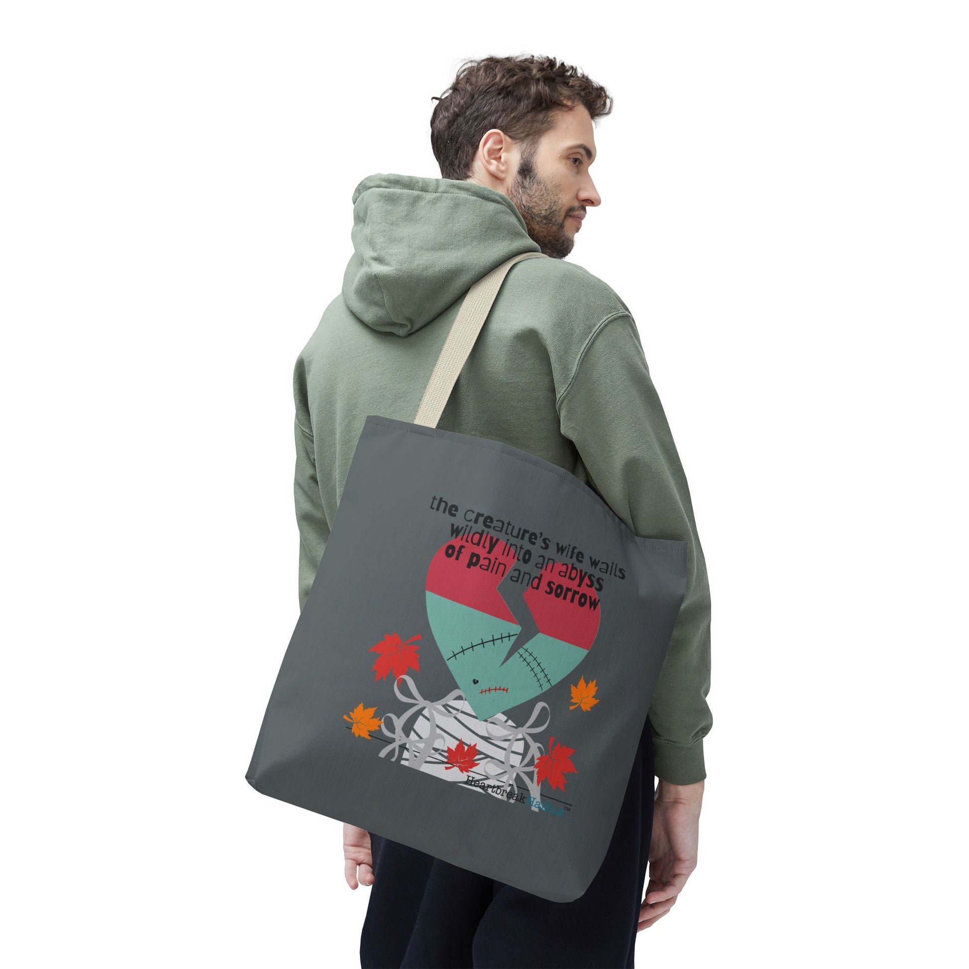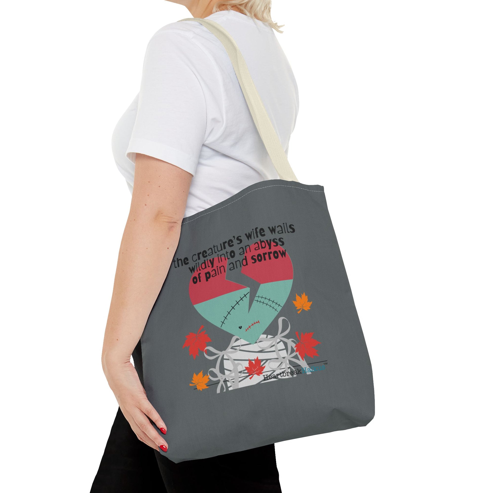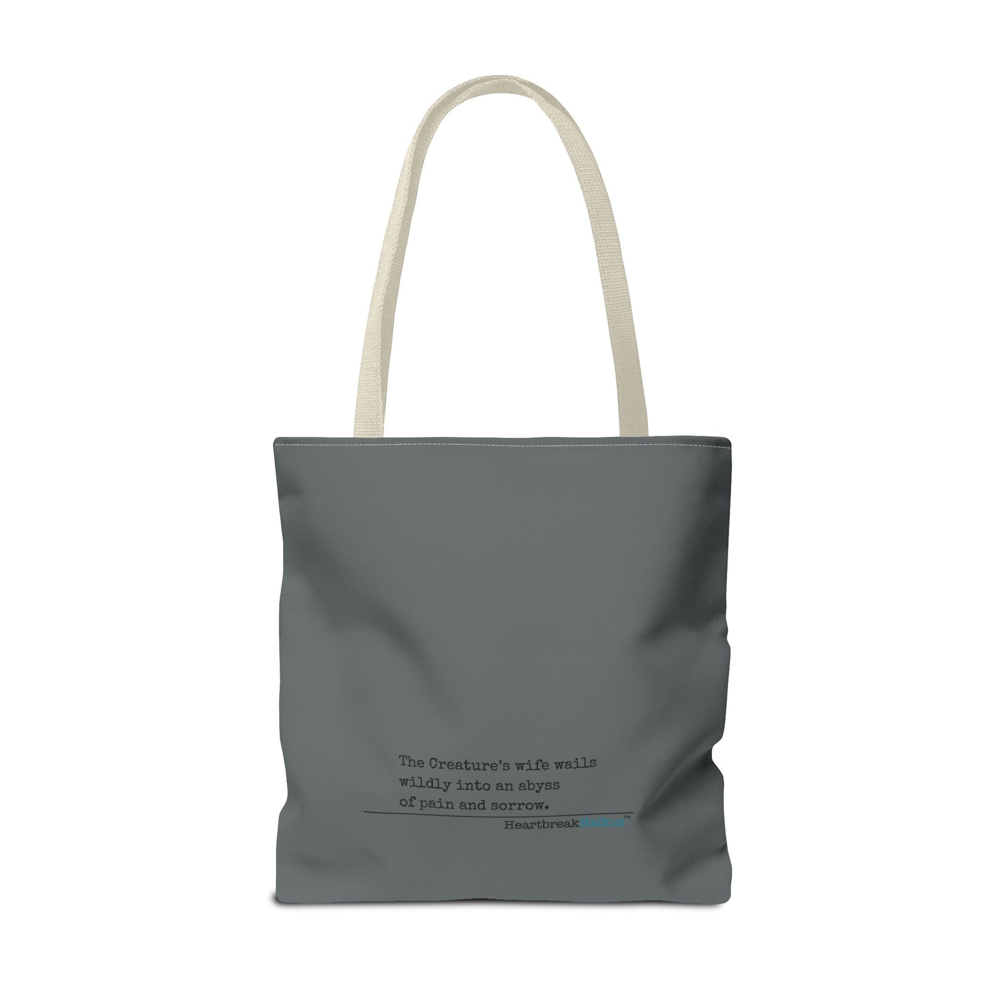 The Creature's Wife Wails Wildly Frankenstein Haiku - Tote Bag (dual-sided print in Slate Grey) - Frankenstein 2025 Makeover